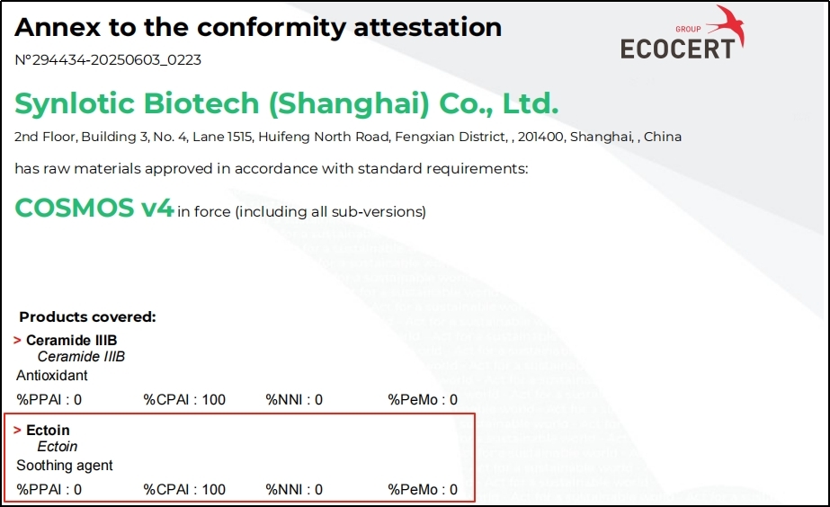 Nedávno Yikeduoyin vyráběný Shanghai Yunluo získal přírodní certifikaci EU COSMOS udělenou ECOCERT ve Francii.