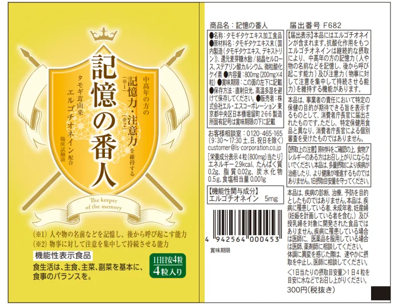 Doplněk ergothioneinu uvedený na trh japonskou společností LS Corporation je produkt určený k řešení poklesu paměti u lidí středního a staršího věku.